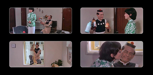 (下圖-下左) 「法朗」將炸彈拆解到最後,發現有一紅一藍兩條電線,「法朗」透過電話,除了和老長官「勃克蘭」敘舊,並詢問應該要如何處理?