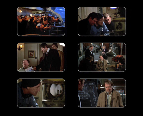 (下圖-上左) 《布丹尼號》船東「波特」致電給船長「布魯奈爾」,希望能對乘客坦白說出實情。